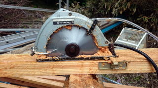 丸鋸に185mmの縦盤を取り付けてカラマツ板を挽き割っていましたがヤニが焦げ付いて切れ味が落ちて作業効率が非常に落ちてしまいました