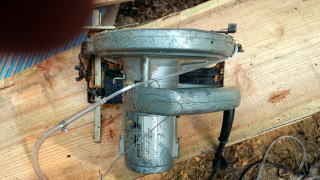 DIY店から細いポリパイプの安いのを購入してきて丸鋸に取り付けました |