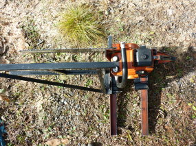 直角方向はそんなに長いバーは要らないのでshindaiwaのE−346に14インチのバーを付けて挽いて見ましたが横挽き用のソーチエンだったので横方向へ振れが大きいのでやはり縦挽き用が欲しい